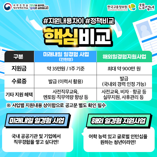 [정책비교] 미래내일일경험 VS 해외일경험