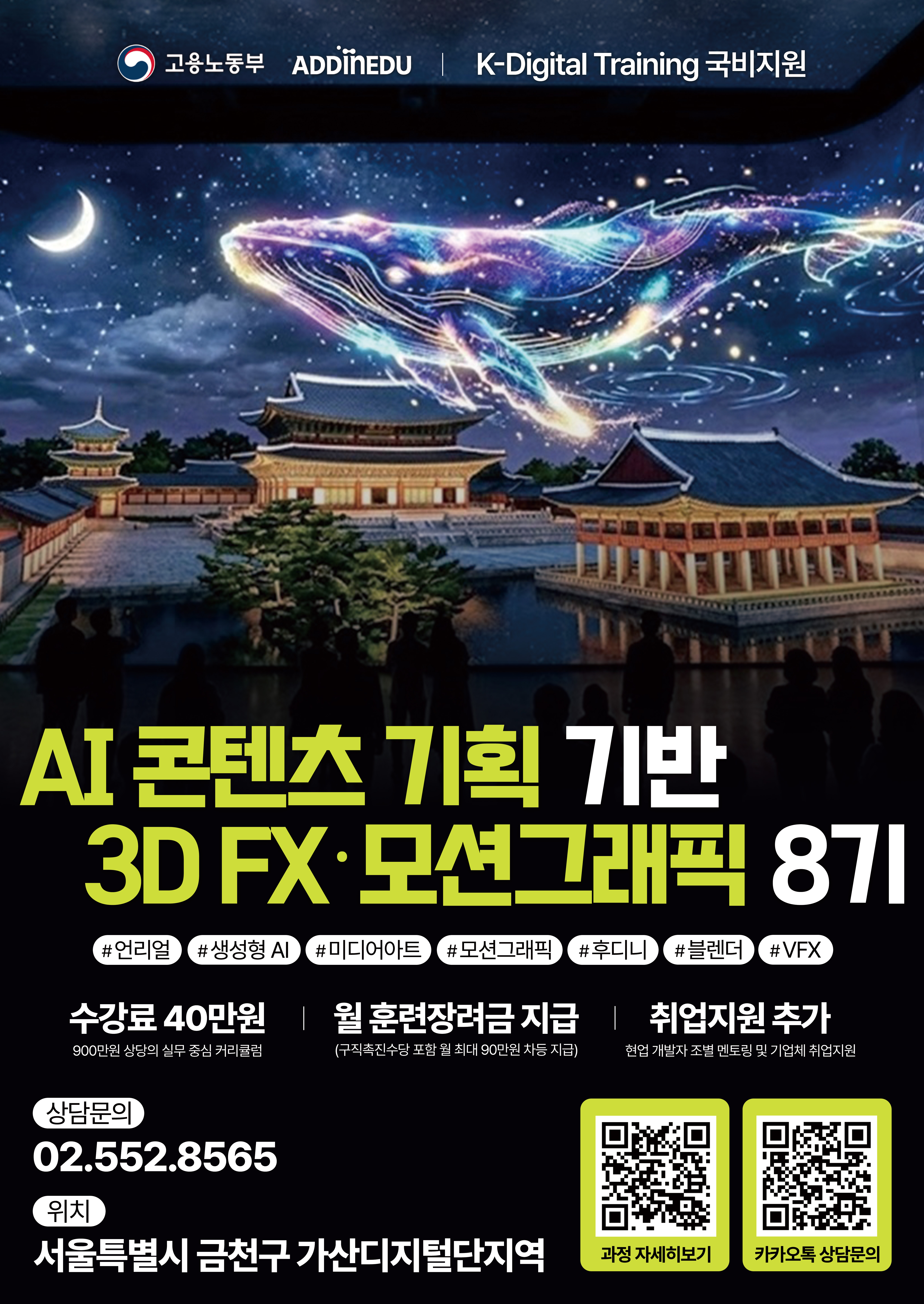 AI 콘텐츠 기획 기반 3D FX·모션그래픽 아티스트 양성과정 8기 교육생 모집