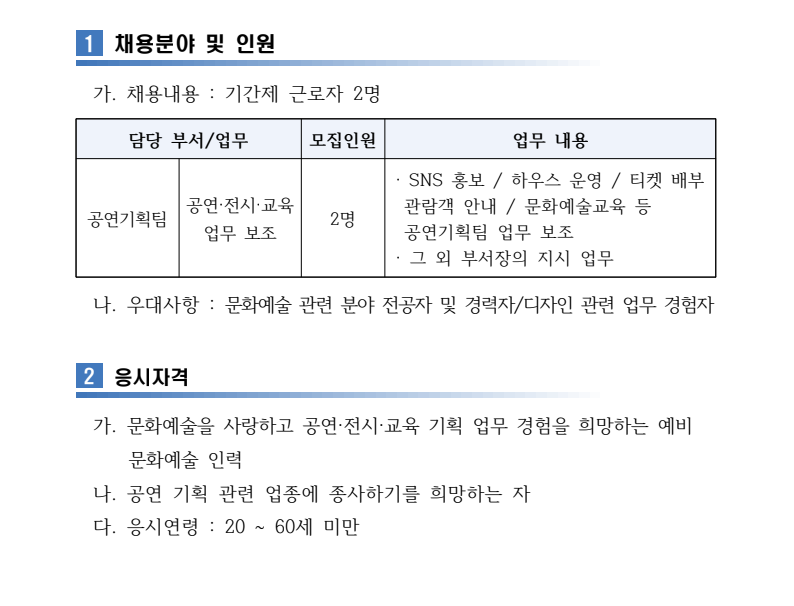 1381 2026년 안동문화예술의전당 공연기획팀 기간제 근로자 모집 (~3/20) 새글 세종경력개발센터 2026.03.10 2 첨부파일