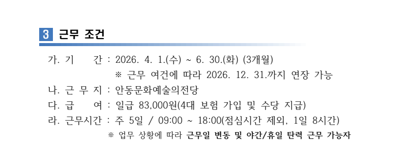 2026년 안동문화예술의전당 공연기획팀 기간제 근로자 모집 (~3/20)