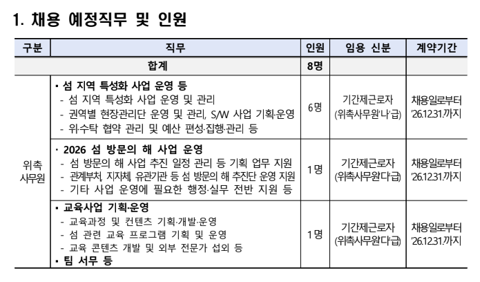 한국섬진흥원은 「섬 발전 촉진법」 제15조에 의해 설립된 행정안전부 산하기관으로서 섬에 대한 종합적이고 체계적인 조사·연구·정책수립·진흥을 목적으로 하고 있습니다. 전문성과 역량을 겸비한 인재를 다음과 같이 공개 모집하고자 하니 유능한 인재의 많은 지원을 바랍니다.