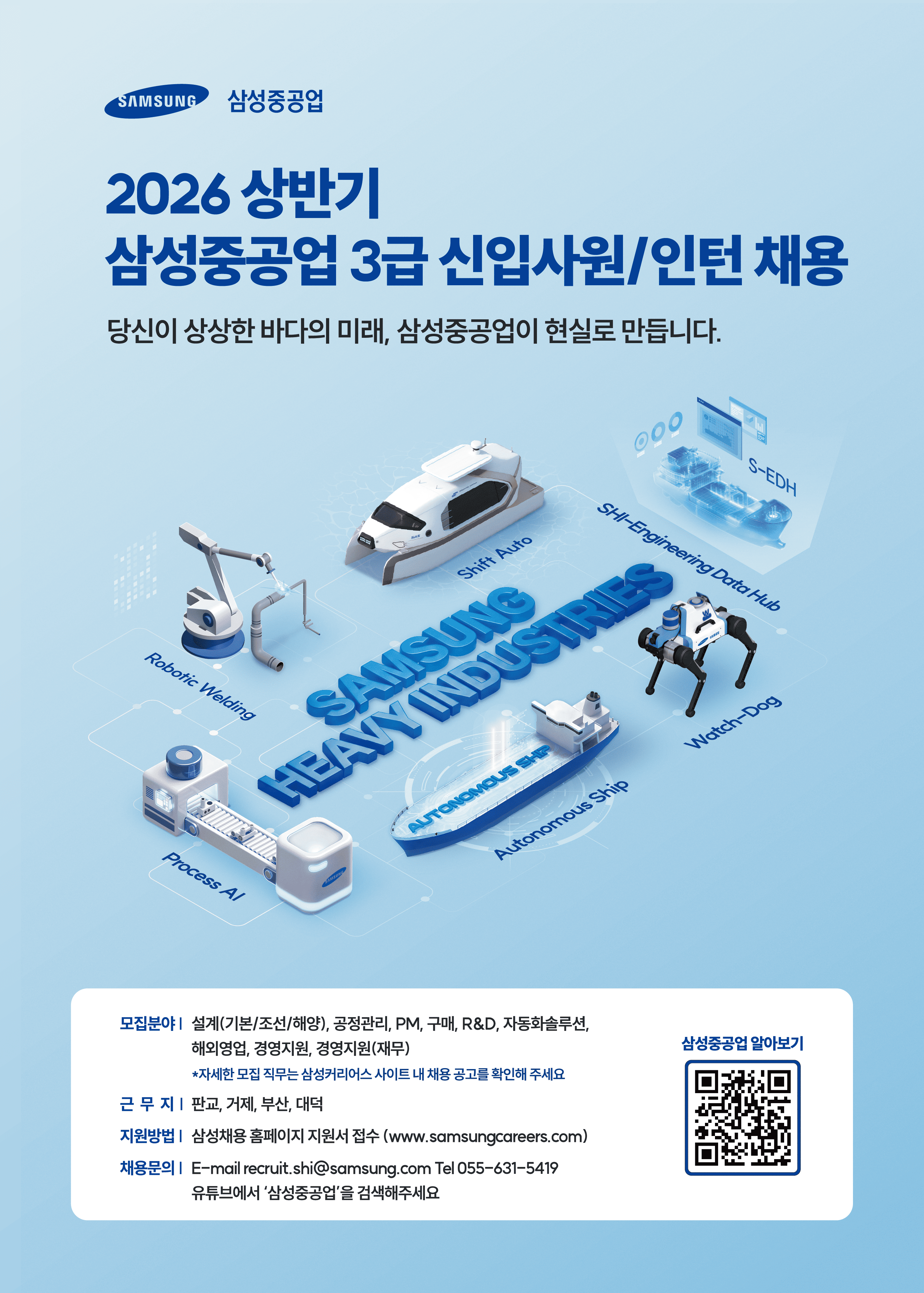 모집 분야 : 설계(기본/조선/해양), 공정관리, PM, 구매, R&D, 자동화솔루션, 해외영업, 경영지원, 경영지원(재무)