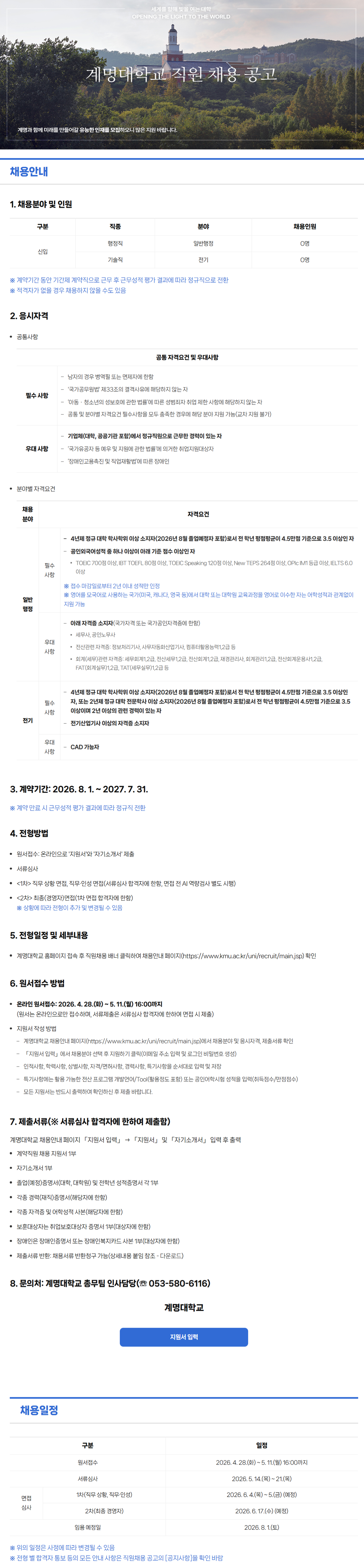 1492 [계명대학교] 직원 채용 공고 (~5/11) 새글 세종경력개발센터 2026.04.28 6